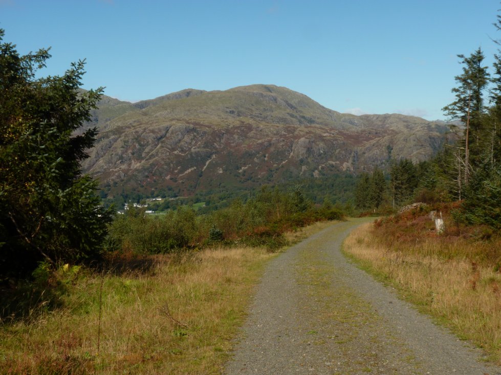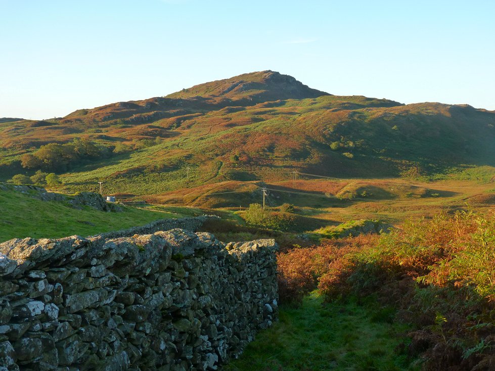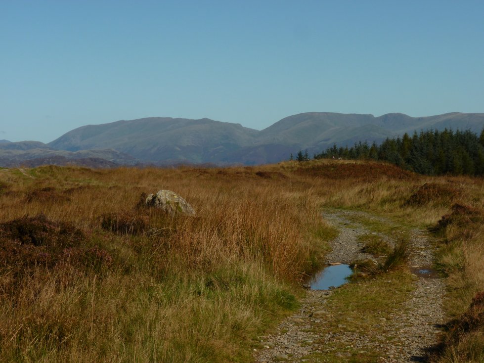 Coniston Old Man and Wetherlam come into sight as I round the top of the trees.