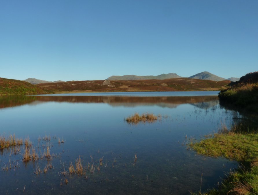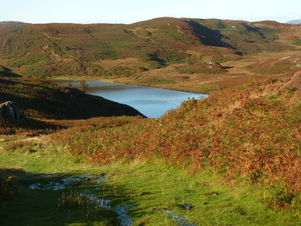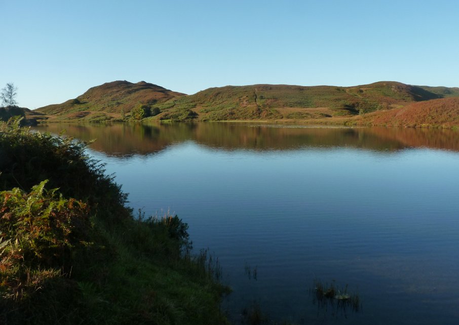 The shallow dip in the hills across the lake is the junction in the path at Low Parkamoor.