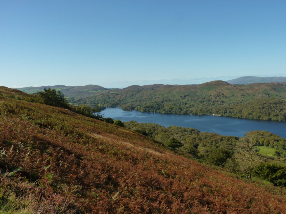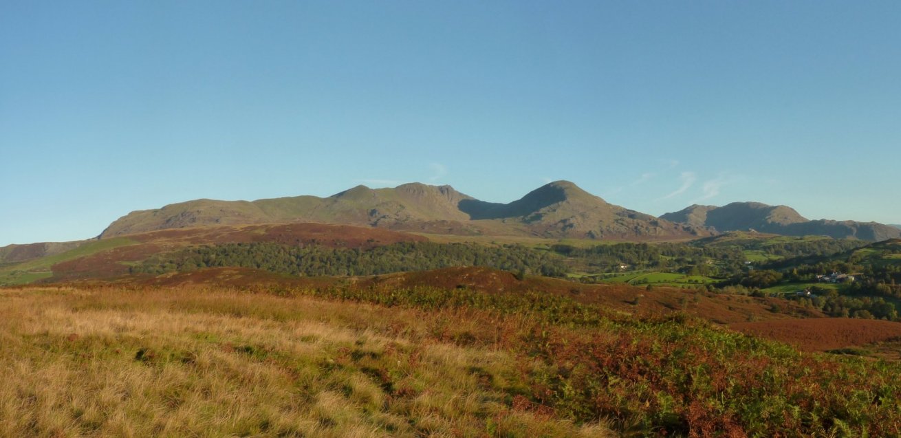 Coniston Water, the Helvellyn fells and the far eastern fells from Beacon Fell.