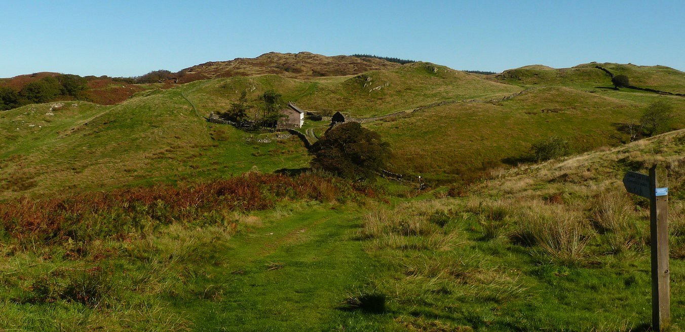 From High Nibthwaite the track climbs steadily for a couple of miles before you come to this branch at Low Parkamoor which if you are heading for Coniston you take.The signpost says it's 6 miles to Coniston which is a bit more than I would have guessed from here.