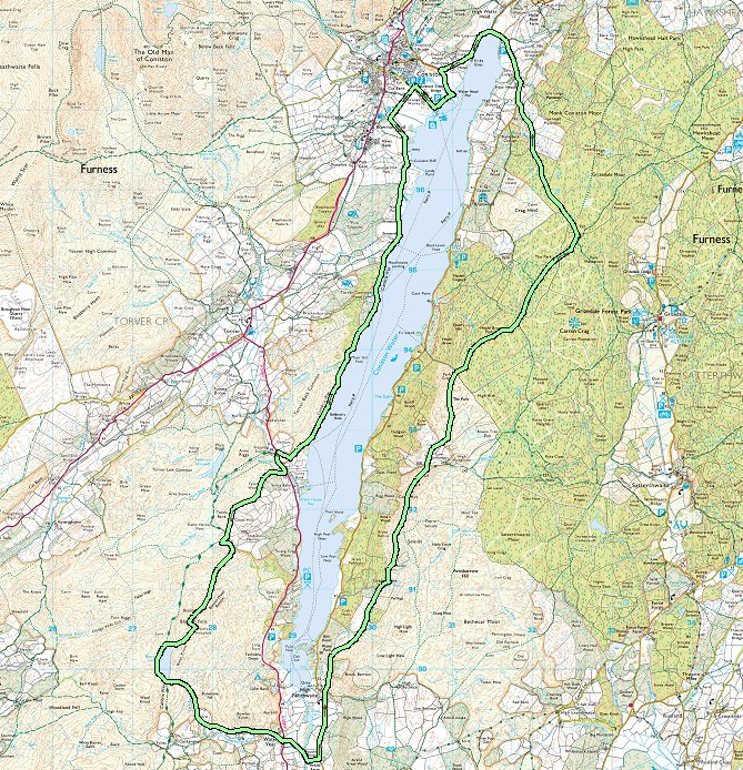 After a very unsettled and mainly rainy week followed by a biblical deluge all Saturday afternoon and evening I couldn't quite believe that the forecast for Sunday was blue sky and sunshine but that's just how it turned out and I had a lovely walk combining a long held wish to explore the full length of the track which runs above the eastern shore of Coniston Water and a long overdue visit to an old favourite Beacon Fell.