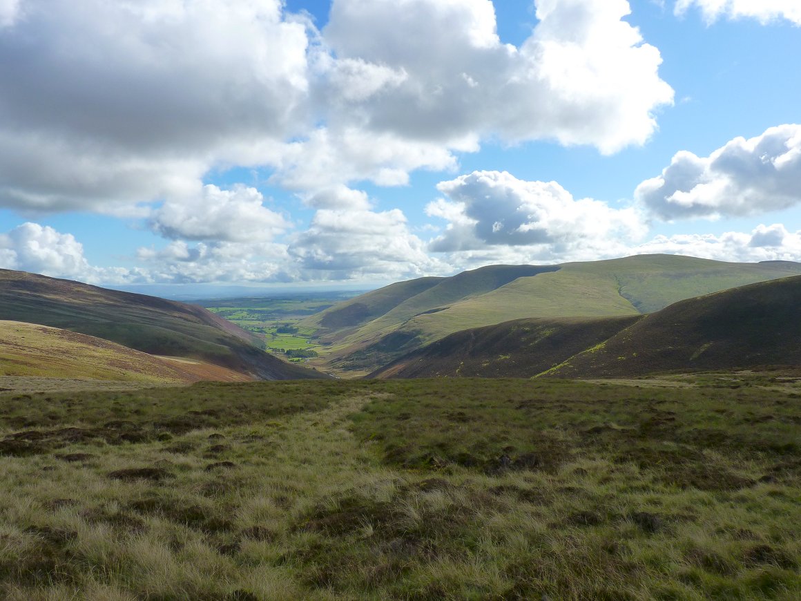 After following the Cumbria Way for a bit we turned left and started the climb to Longlands Fell. This is looking back down the hill to the coast. The hills in Dumfries and Galloway where quite clear although the camera just can't pick them out.