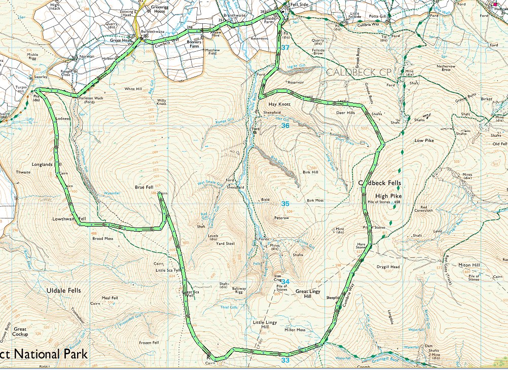 From where we followed the track to Fell Side and then a mile on the road back to Burblethwaite.