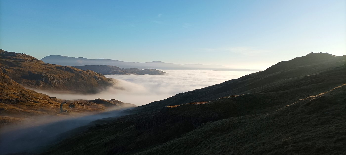 Most of the high ground in the country seems to have an extended period of cloud inversion conditions and the Lake District was certainly no exception. I had family stuff booked in for Saturday or I would definitely been out camping but the next best option was an early start and a drive up to a high pass from where hopefully we would be quickly able to get out into the sunshine.