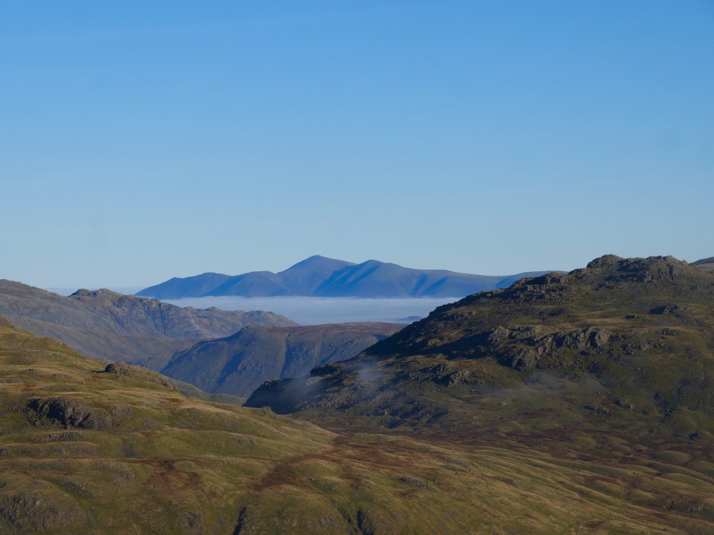 Looking to the west the inversion seems to go on for ever. The "island" of Harter Fell appears.