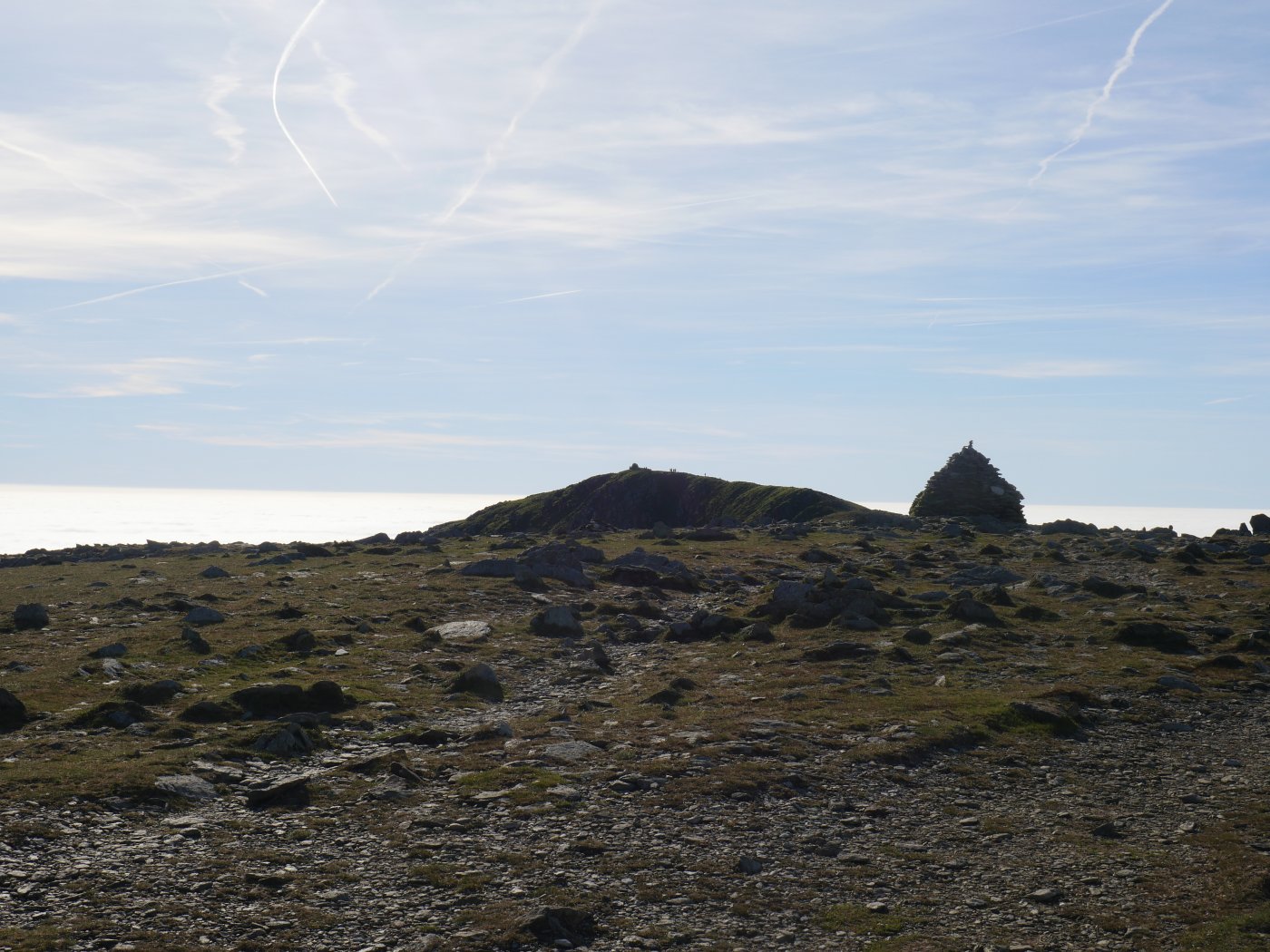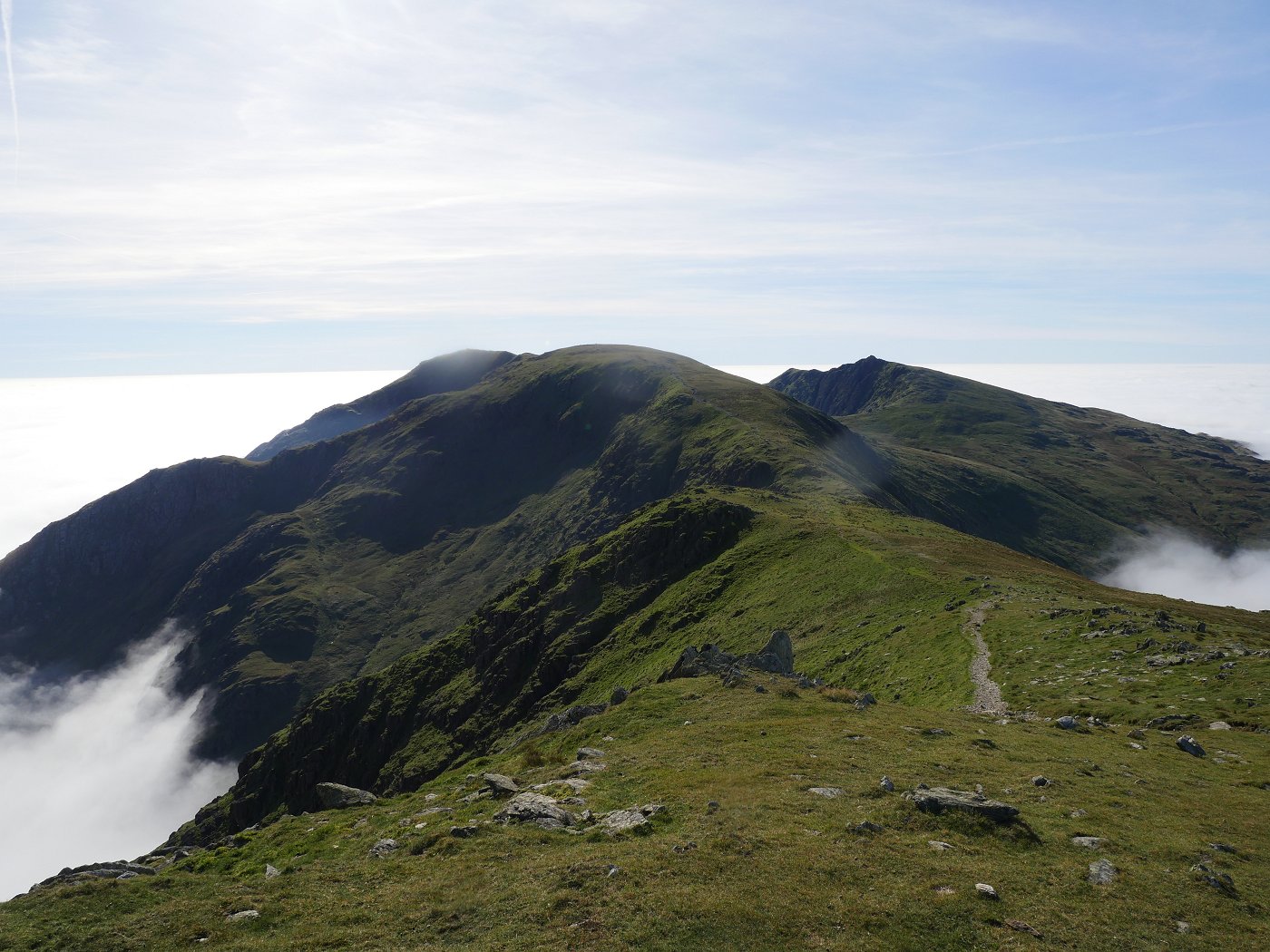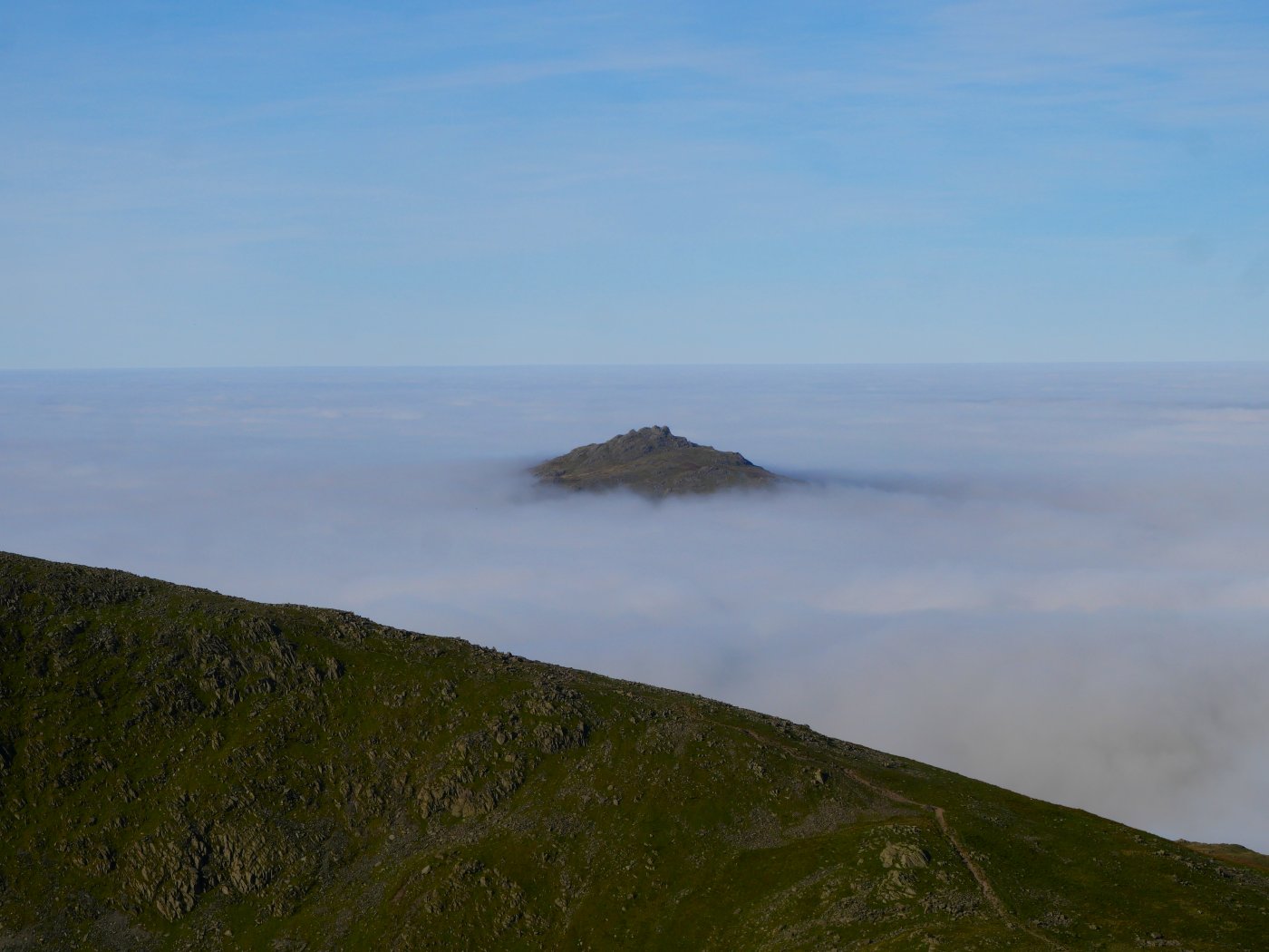 The view from the summit cairn on Grey Friar showing the extent of the cloud to the west.