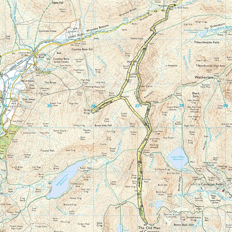 Leaving the top we had a look across to Brim Fell and the Old Man of Coniston where we are heading next. Dow Crag is the pointed peak on the right but we are not going there today.