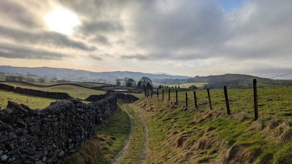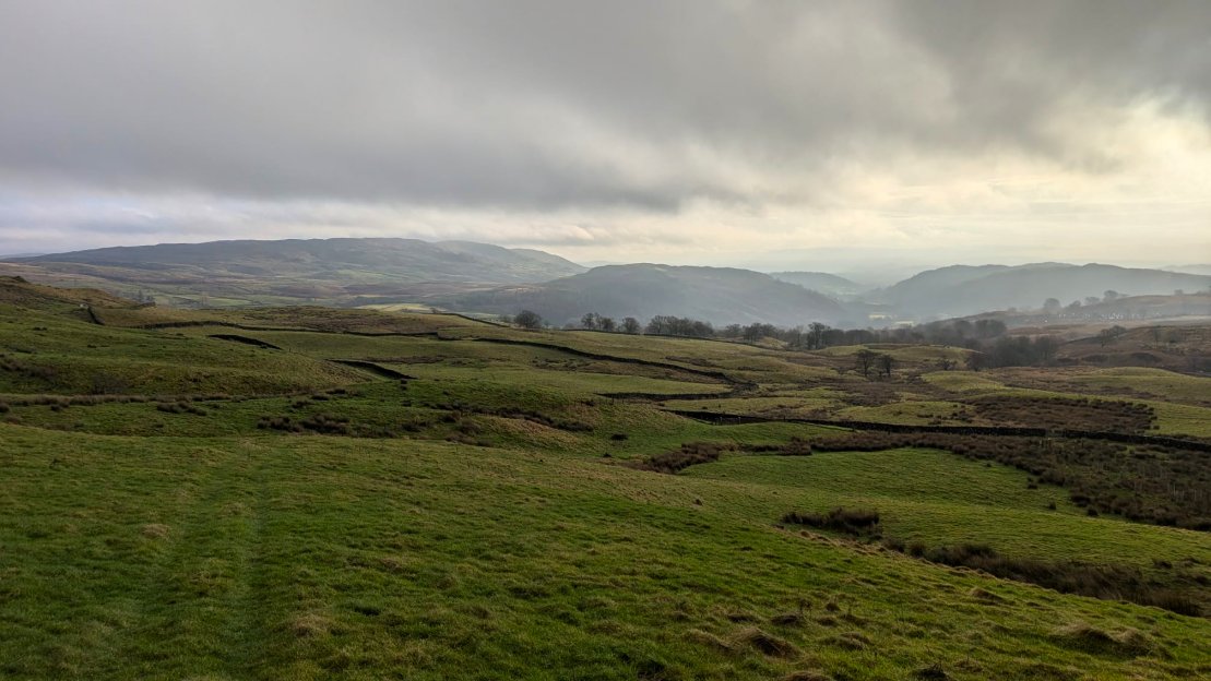 Following the bridleway back home now. Hugill Fell is the higher ground in the distance.