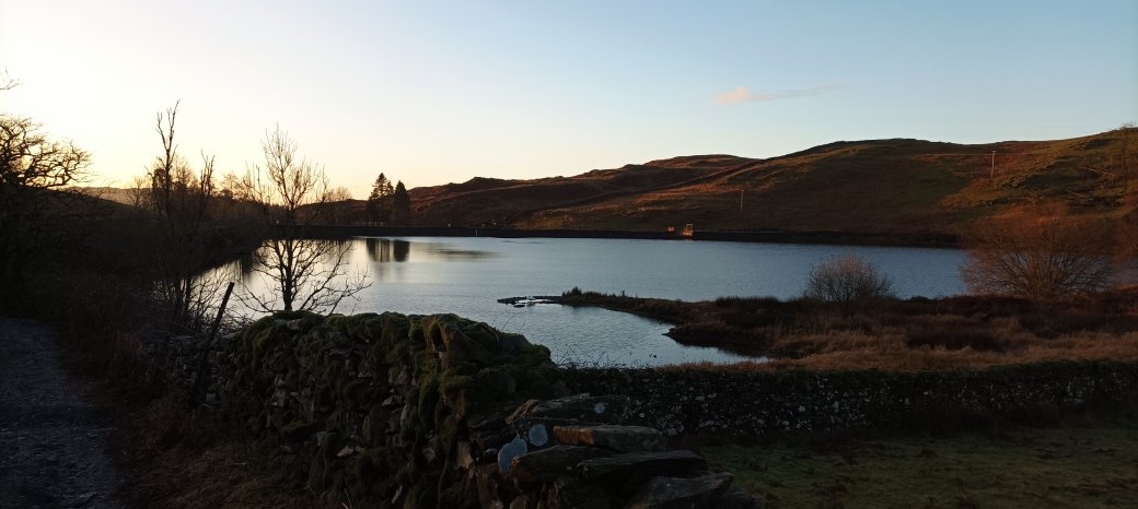 Our day started very promisingly with blue skies and a bright winter sun which is now lighting up Sour Howes. We had parked at Moor How and are walking along the Dubbs road which passes the Dubbs reservoir.