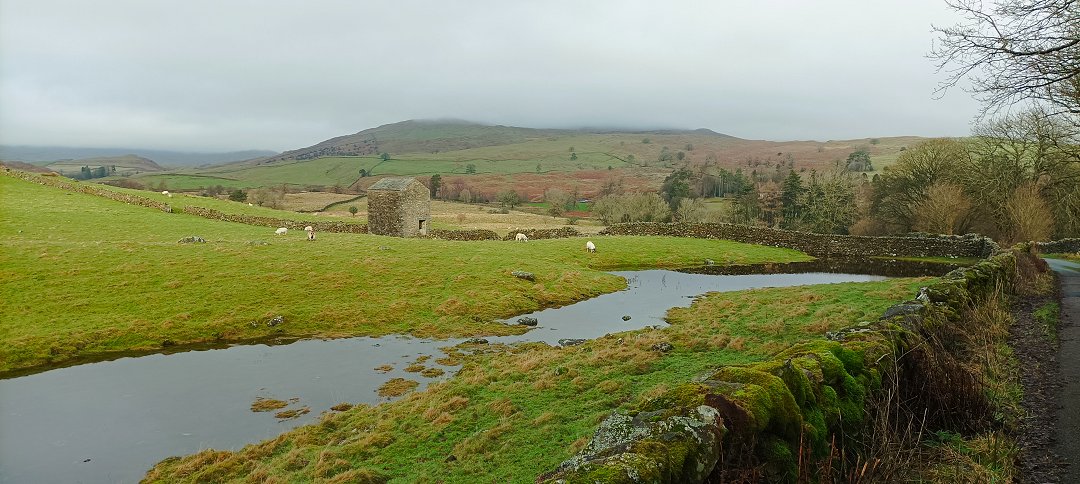 A quite attractive temporary tarn has formed in the hollow by the High Borrans road which made a nice foreground to the old barn and Sour Howes