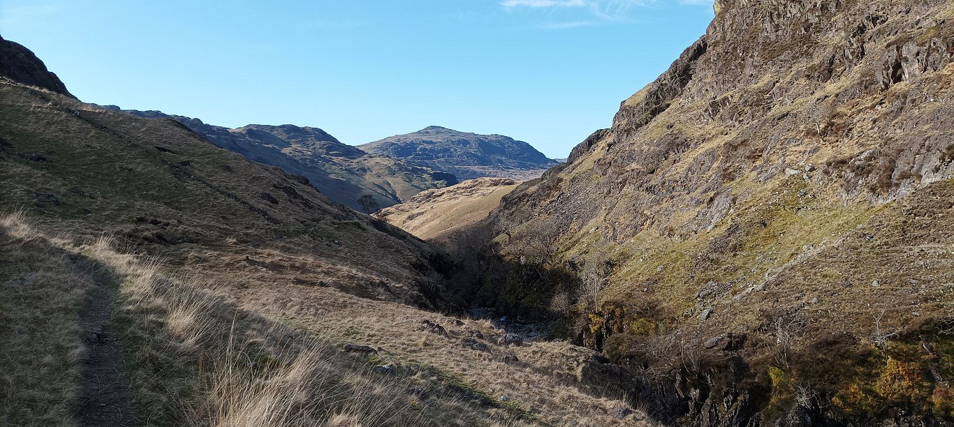 I really like this little section where the valley narrows and you get a great view of Harter Fell The Esk is now in a very deep and scary gorge.