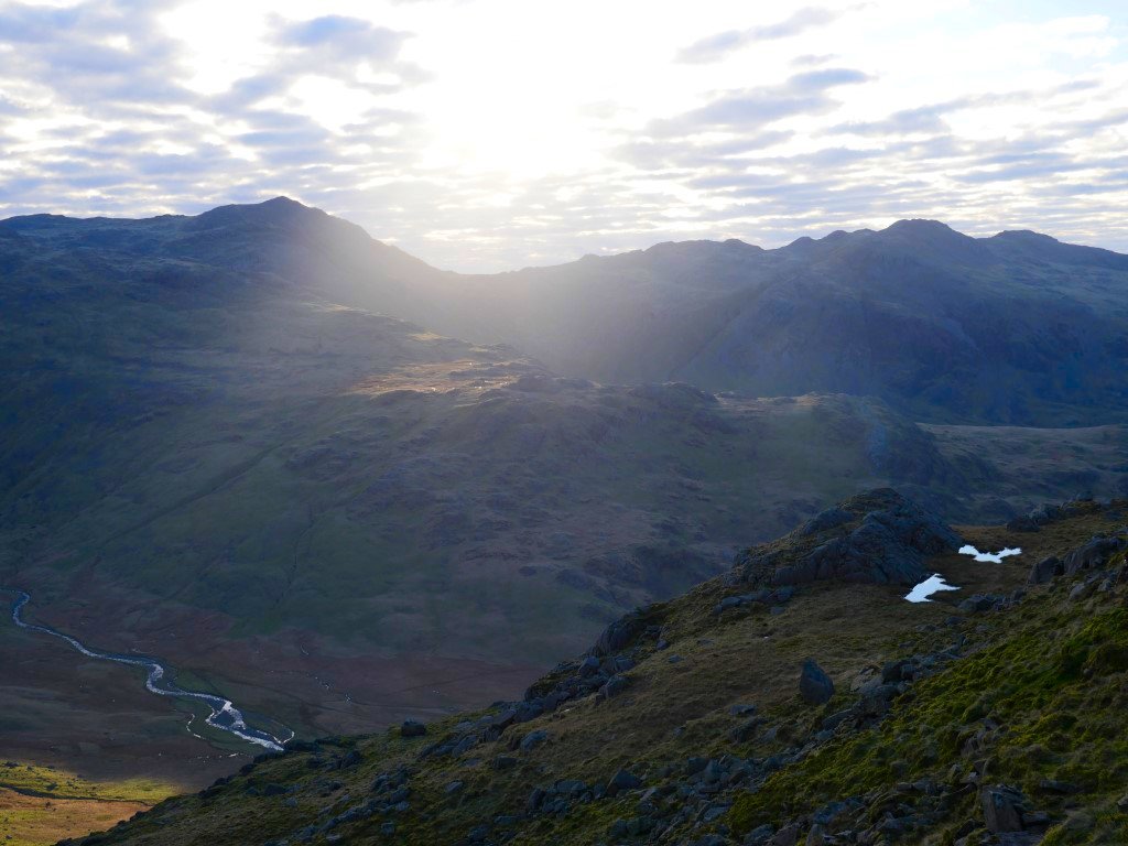 Monday was a very nice day, the slightly chilly breeze from yesterday had died down and the soft morning light over Bowfell was lovely to see.