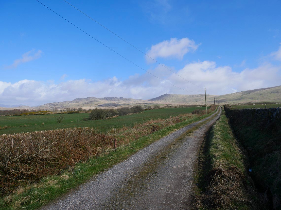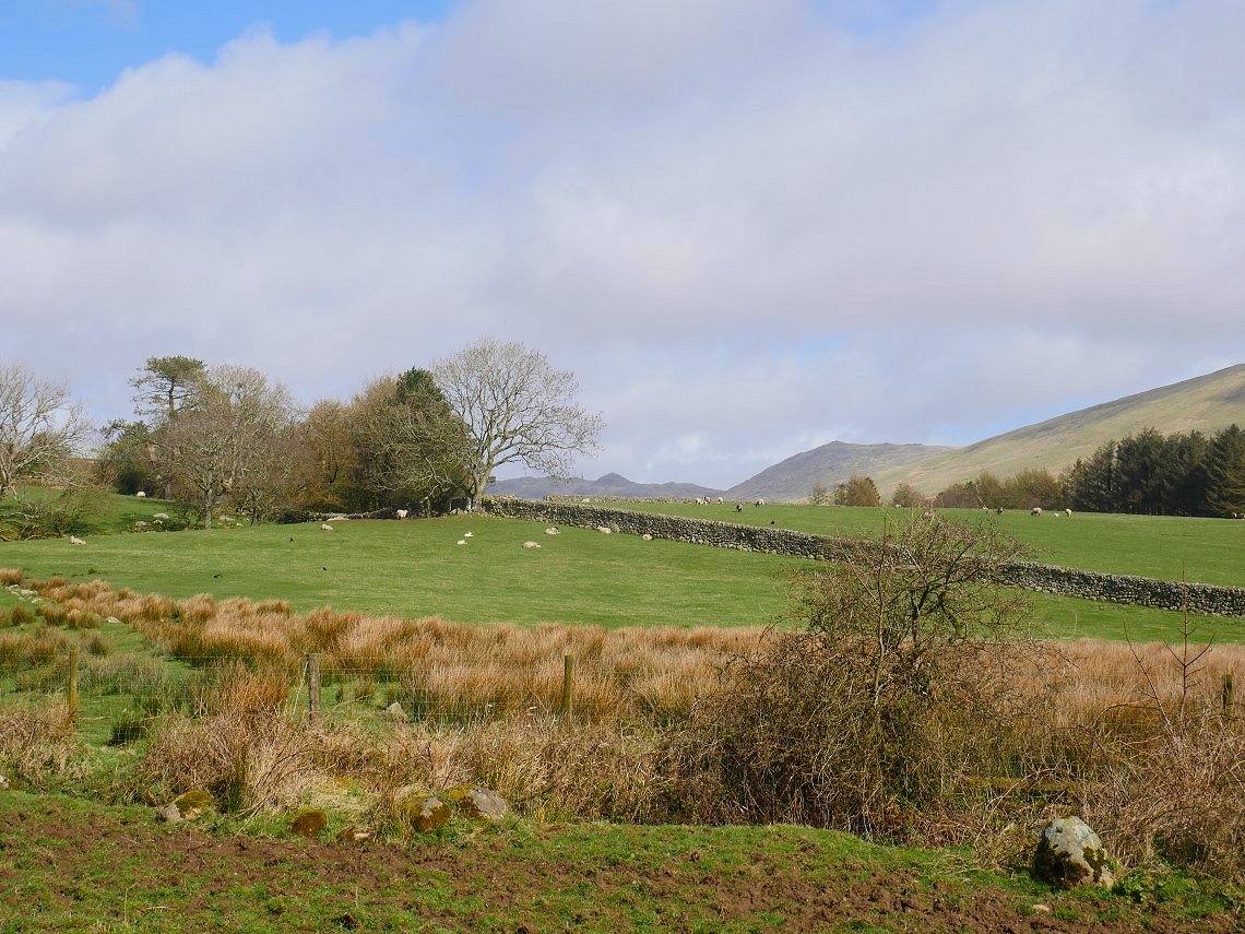 The driveable track heads for Grange farm but the bridleway carries on across a very wet in places Waberthwaite Fell. There are remnants of old settlements dotted about but to be honest to my untrained eye they just looked like random stones.