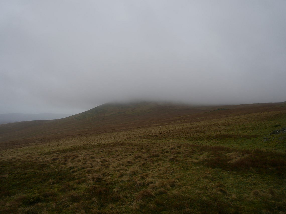 I was up early to try and beat the rain. It was dry but the cloud was down to quite a low level. That's Whitfell in the mist.