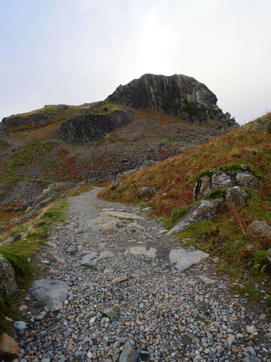 The "notch" of Swirl Hawse comes into sight. The ascent is easier than it looks as the path swings in a loop around to the right rather than going straight up the front.