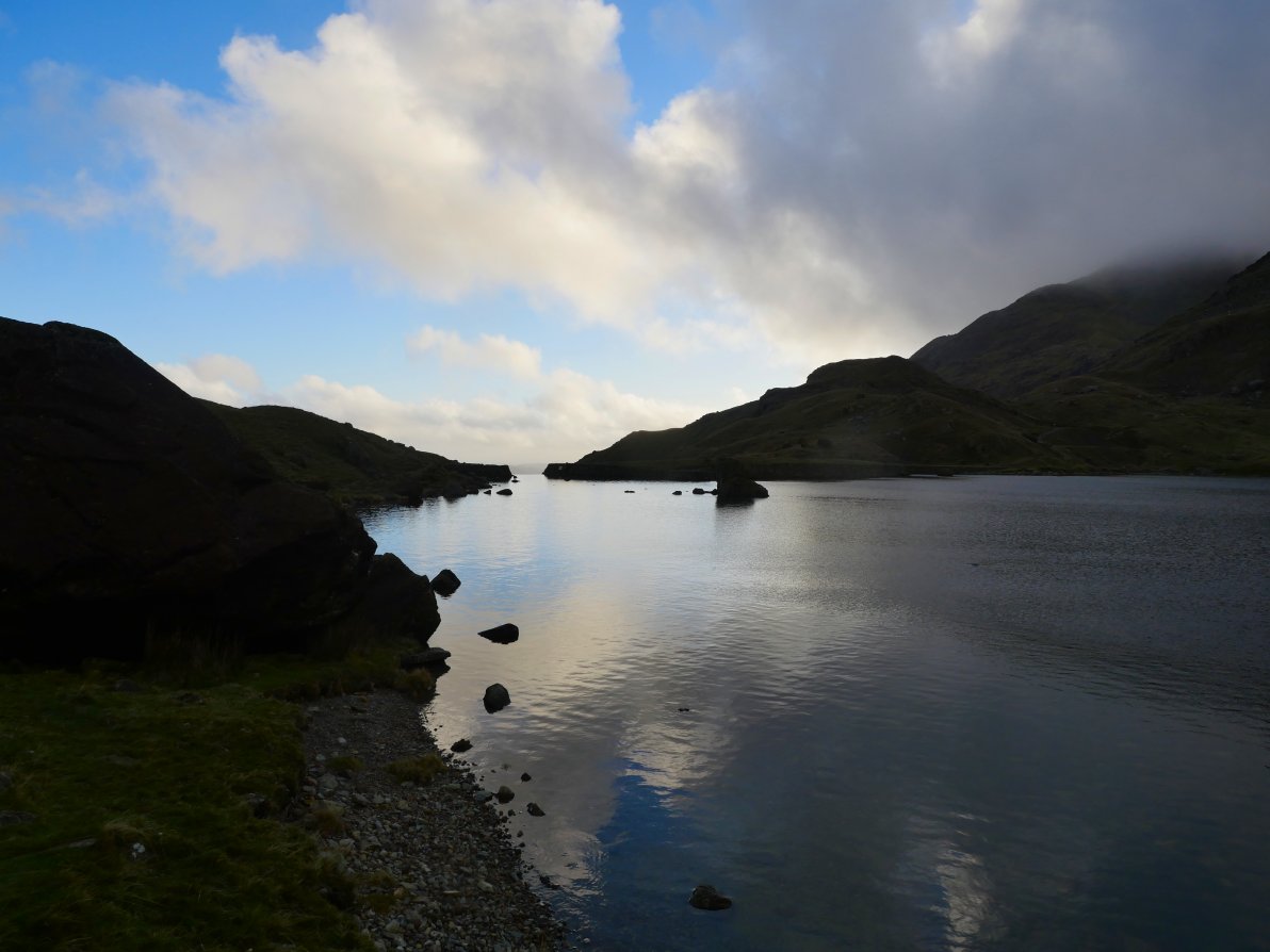 The night was incredibly mild for November and I spent a long time lying on my mat outside the tent looking up at an amazing starry sky and later at the moon as it lit up the clouds to the east and shone on to Greenburn reservoir