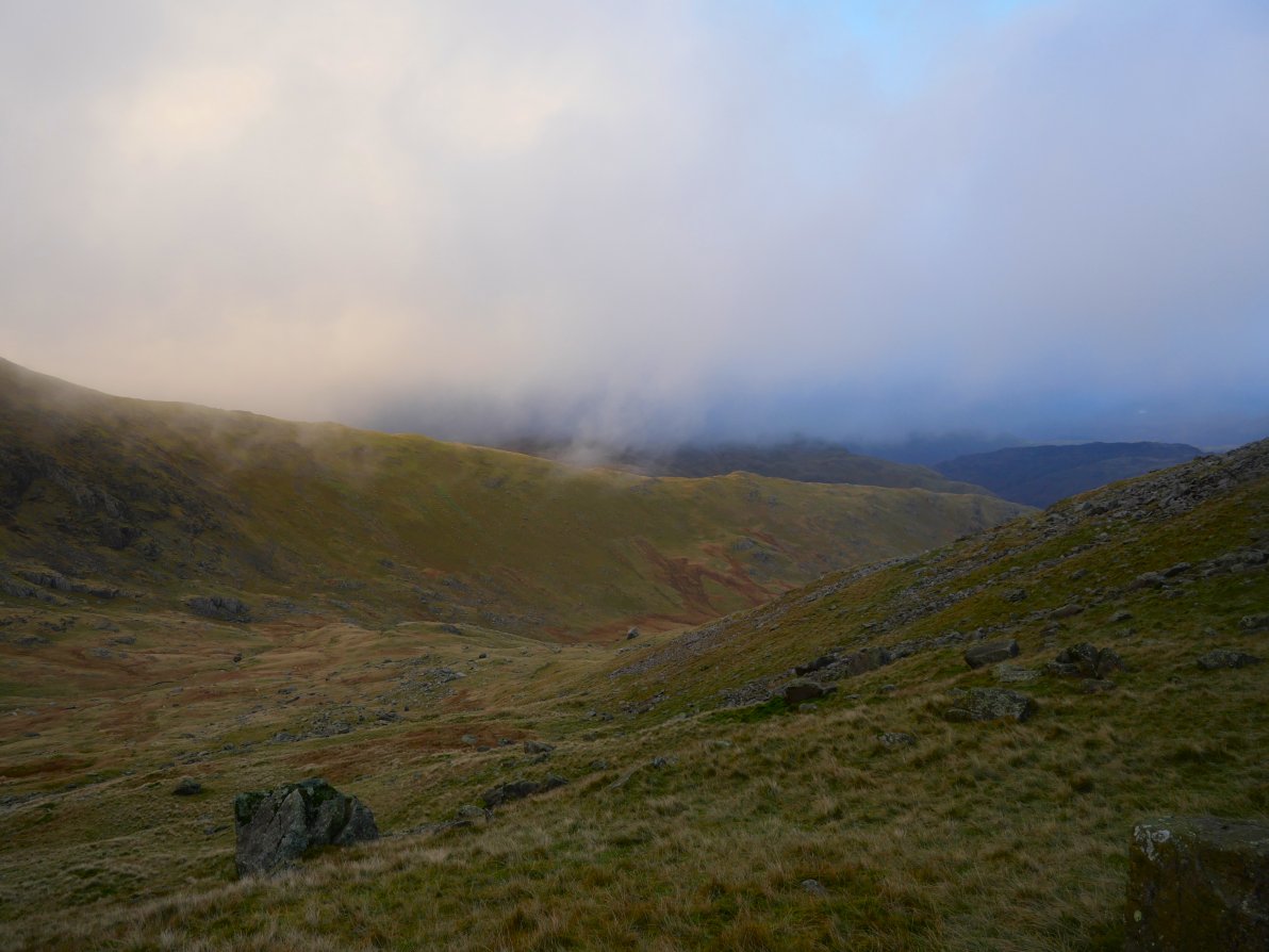 And looking down into Greenburn. There are no paths marled on the map down into the valley from Swirl Hawse but there is quite a clear trod down the grassy slope.