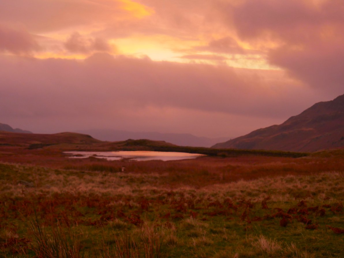 The forecast for Sunday was for a dry start with rain coming in the afternoon and the day did start with a lovely red glow and mist over the fells to the east.
