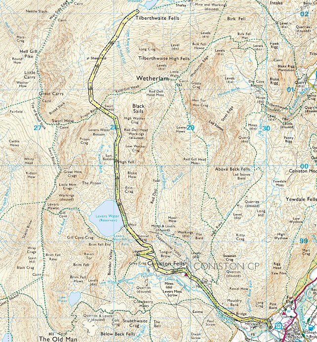 Great Intake. It was now raining quite hard so I decided to scrap the idea of Wetherlam and instead descend to the road at Tilberthwaite and walk back to Coniston that way.