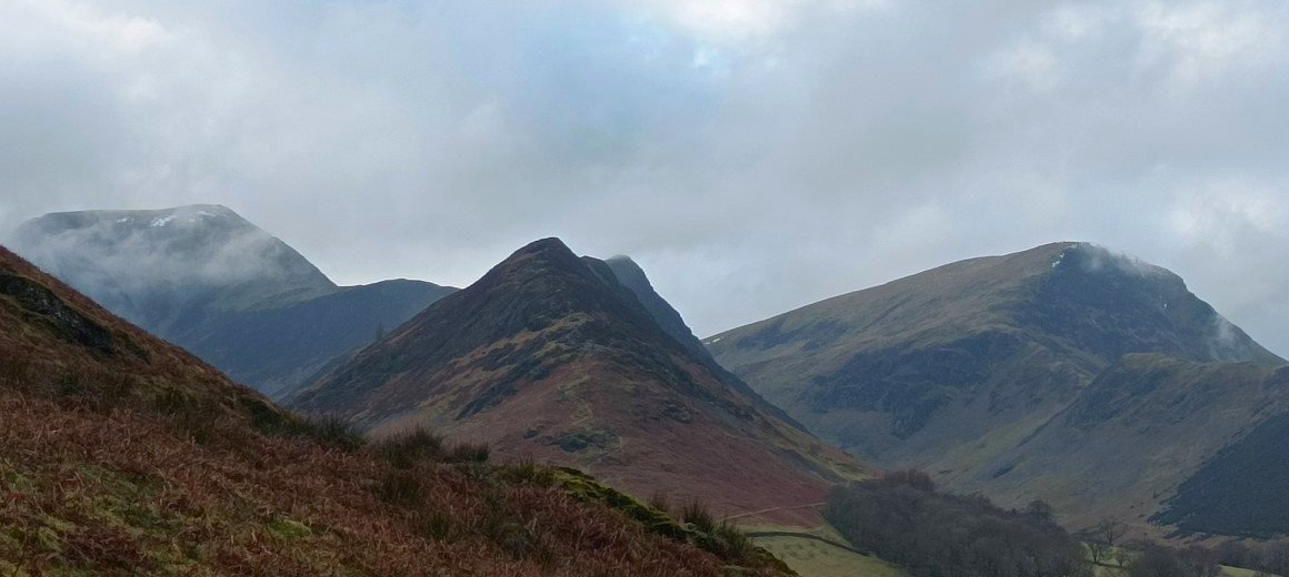 Across the Newlands valley are the Causey Pike/Scar Crags ridge on the right and the Ard Crags/Knott Rigg ridge on the left