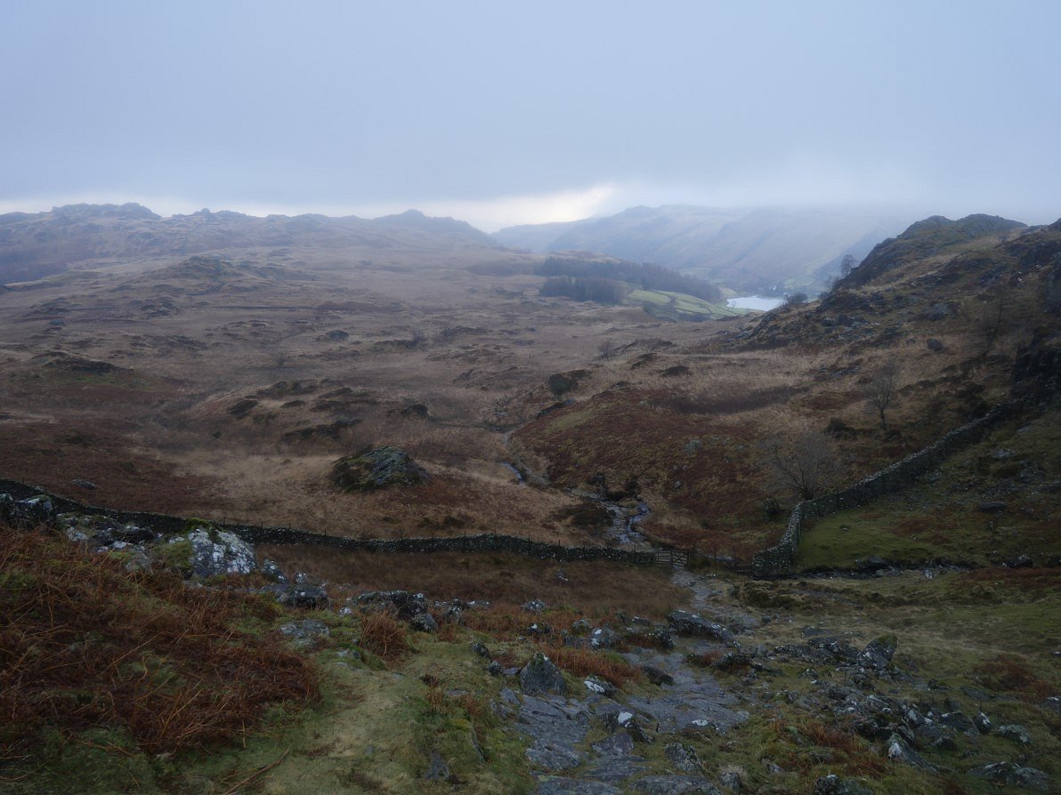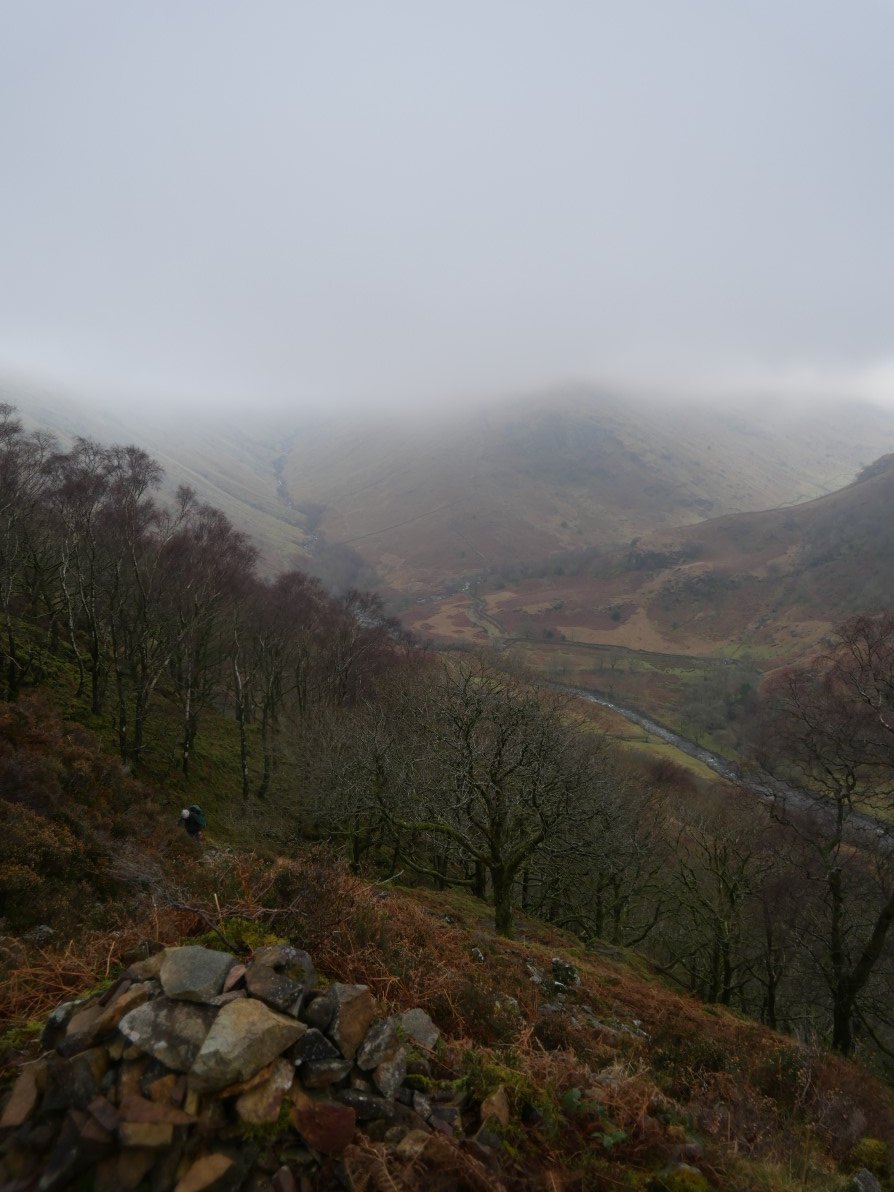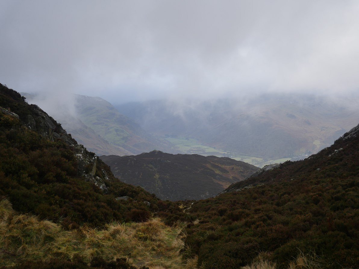 And from a col just before the summit we had a misty view along the Seathwaite valley.