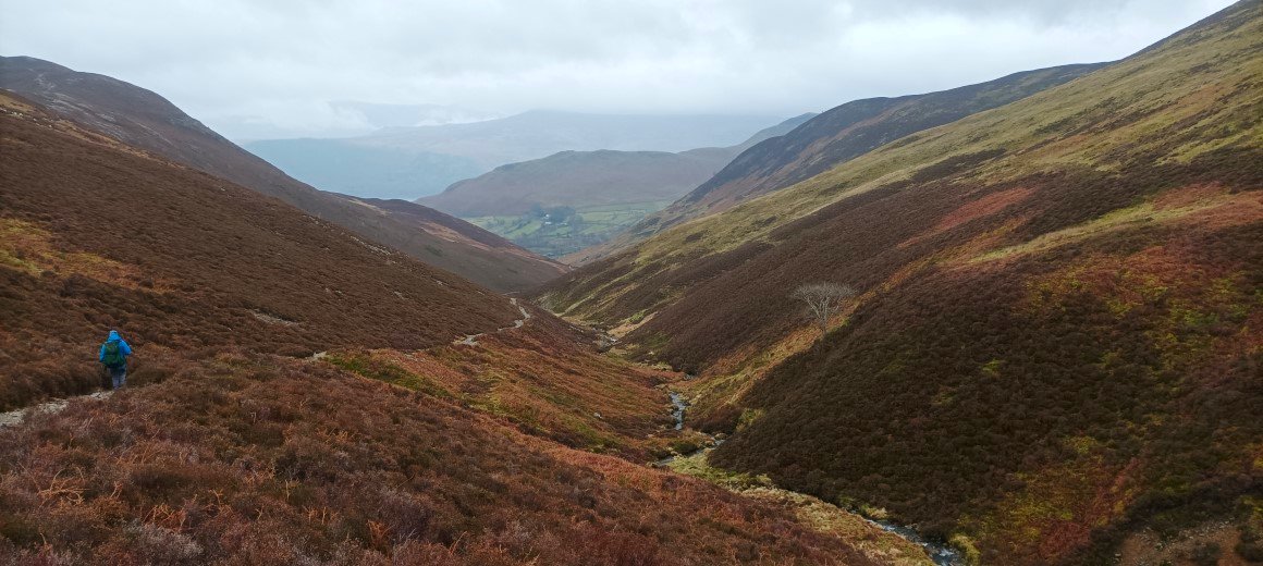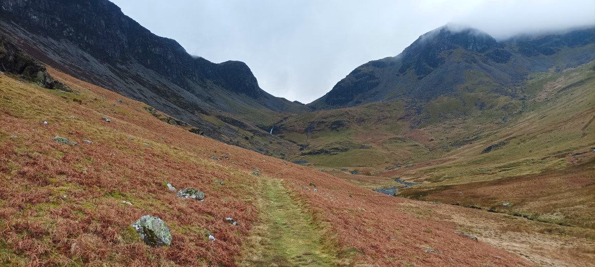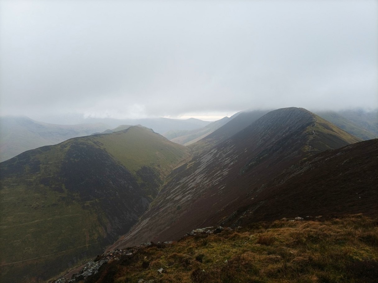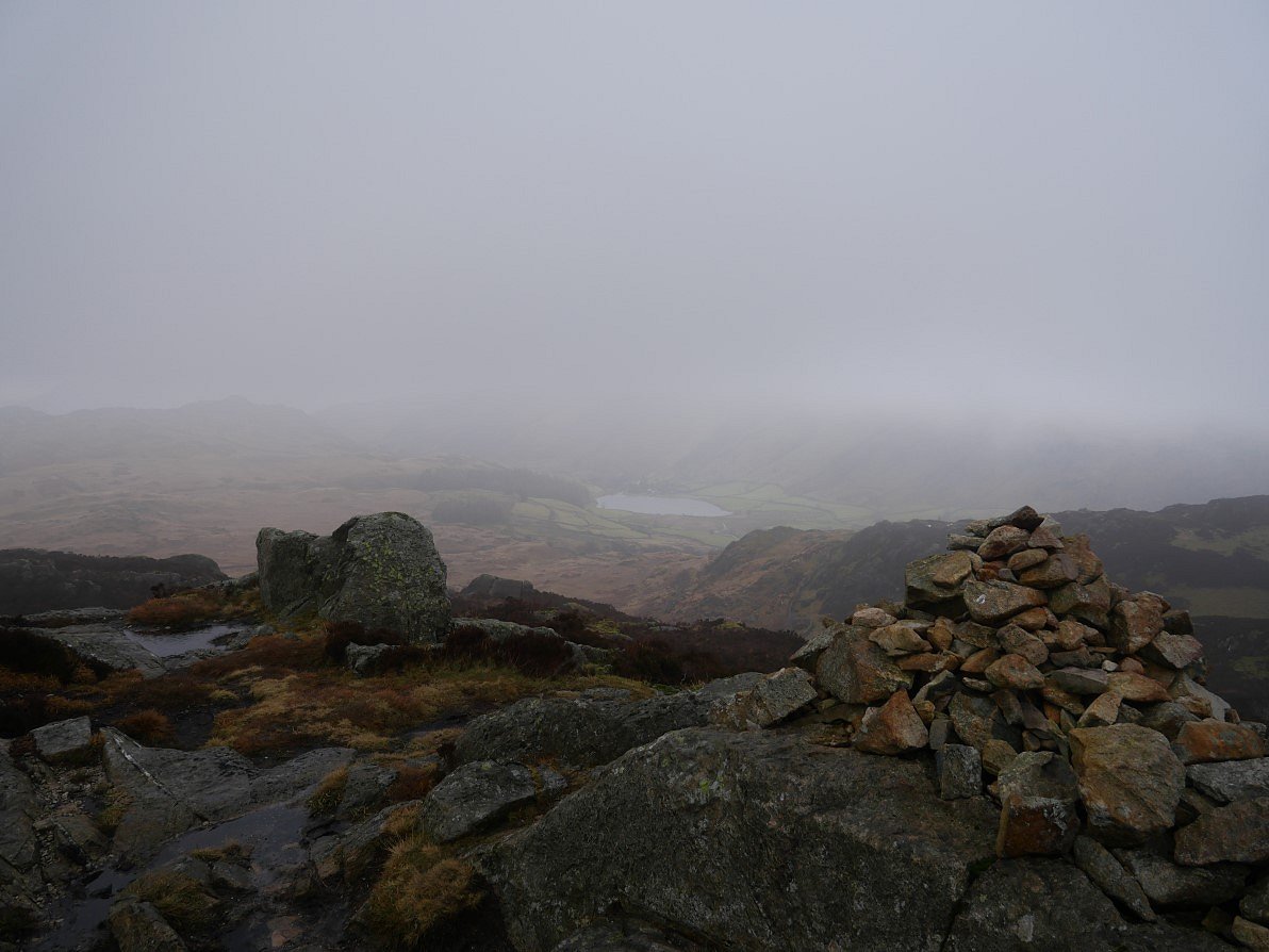 And from a col just before the summit we had a misty view along the Seathwaite valley.