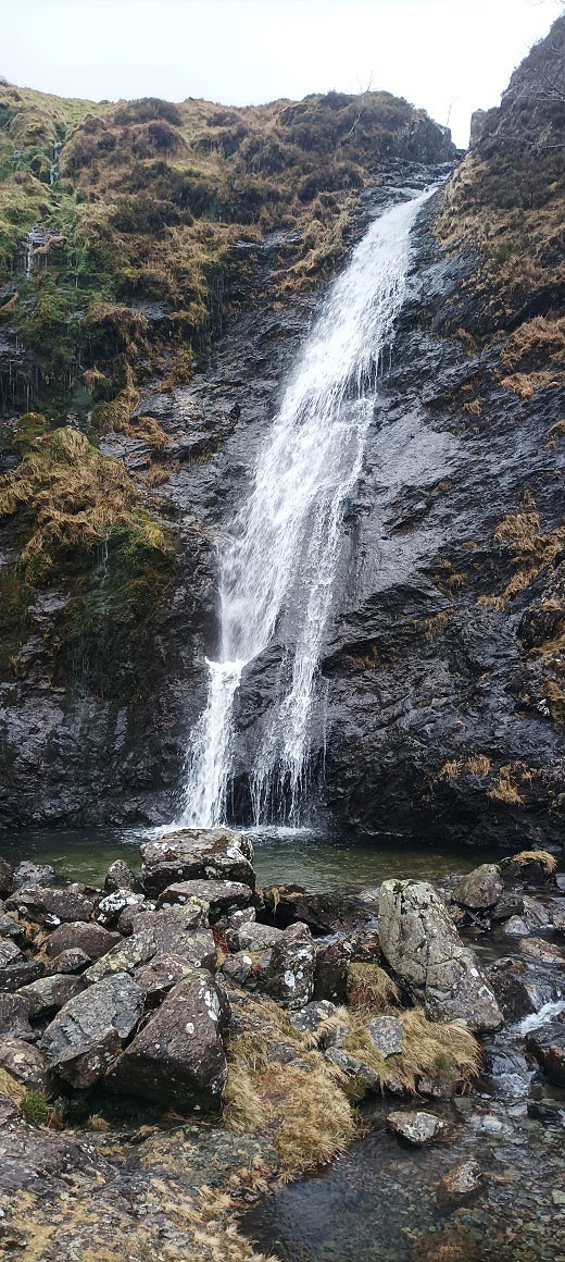 Although the day was quite mild and we had no ice the steps down the steep gully were very greasy so we took our time.