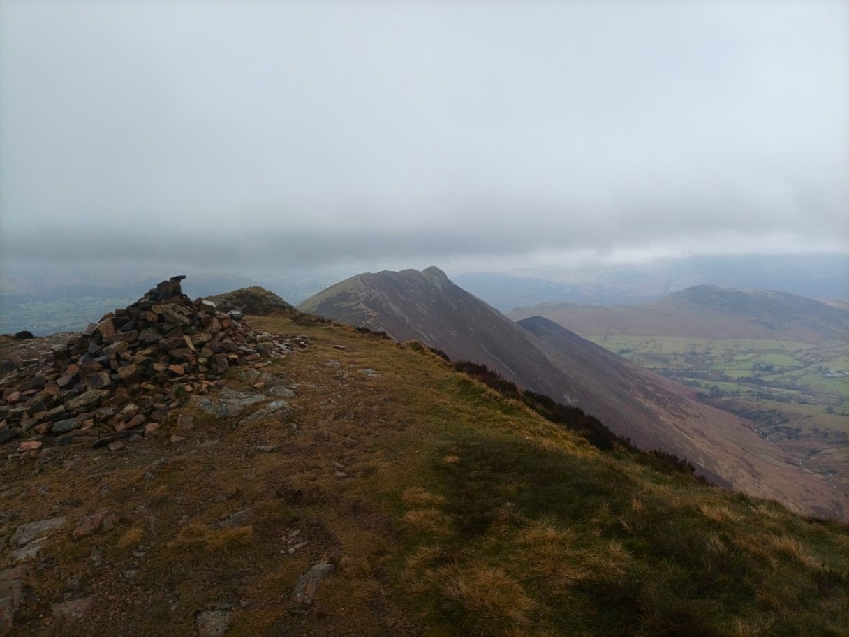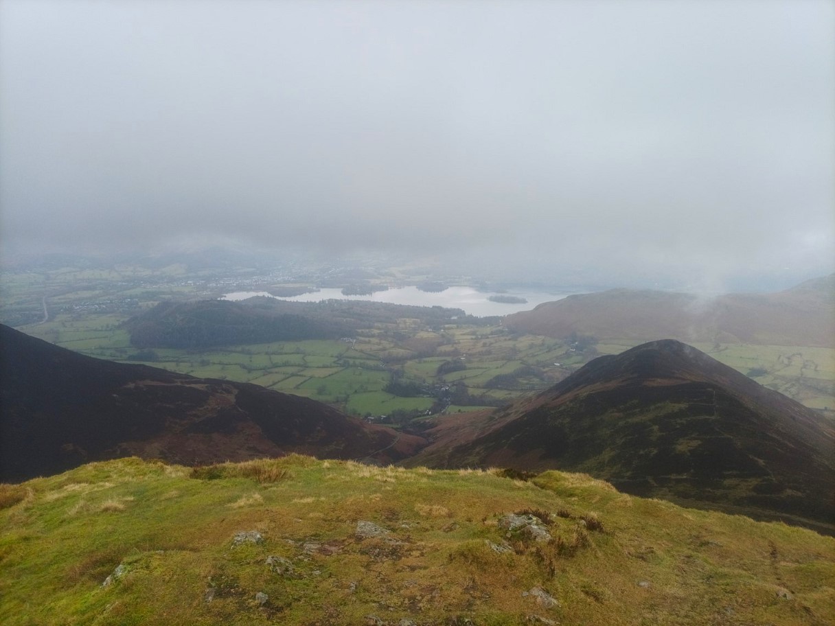 Very cold on Causey Pike so we didn't hang around. Derwentwater below under low cloud.