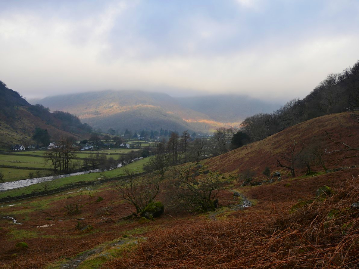 We arrived mid morning and after parking up we walked straight from the hostel to walk a round that I've done a few times. It was quite mild and looking to the north from the road to Stonethwaite there were quite a few patches of blue sky,