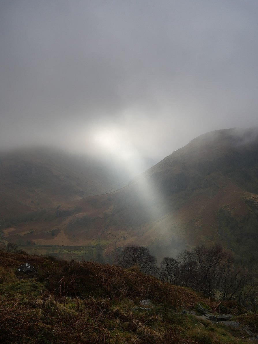 From the top of the steps there is not much sunshine to see over Eagle Crag and Langstrath.