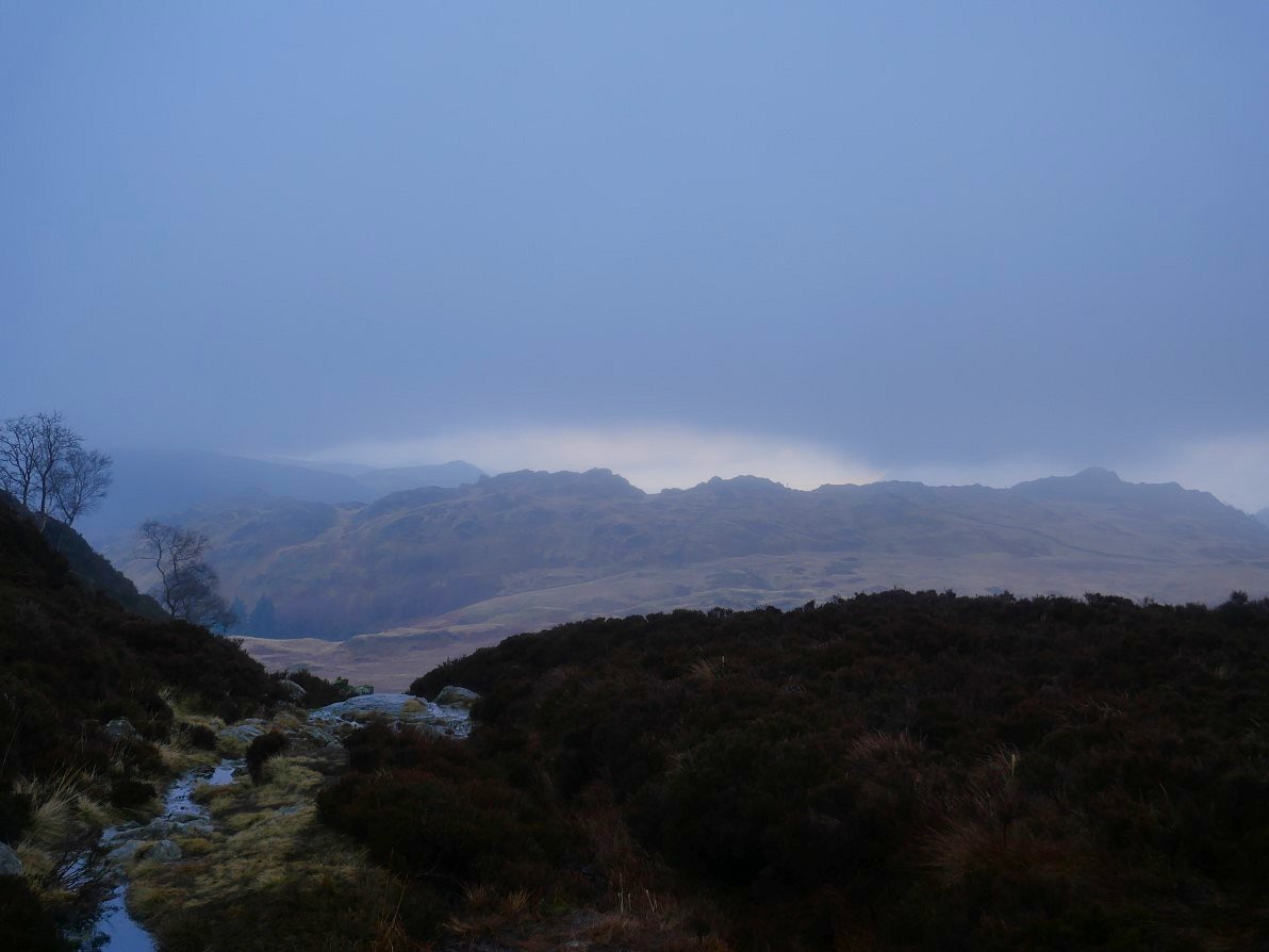 And a nice bit of winter sun on High Doat seen from the climb to the base of the steep steps to Lingy End.