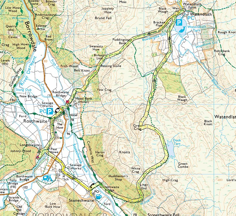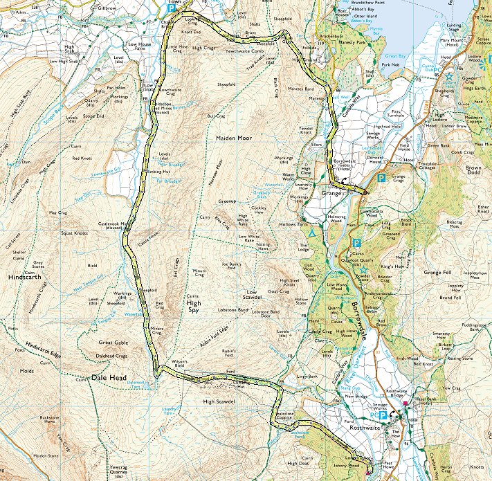 Route 17th - Grange - Hause Gate - Yewthwaite Comb - following Newlands Beck - Rigghead Quarries - Johnny Wood - ( About 7 miles 2200ft of ascent )