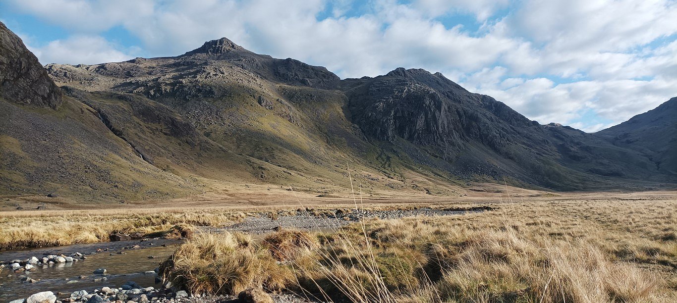 Lambfoot Dub is having a moment in the sun seen from the walk up through Calf Cove. Great Gable does indeed look great from here.