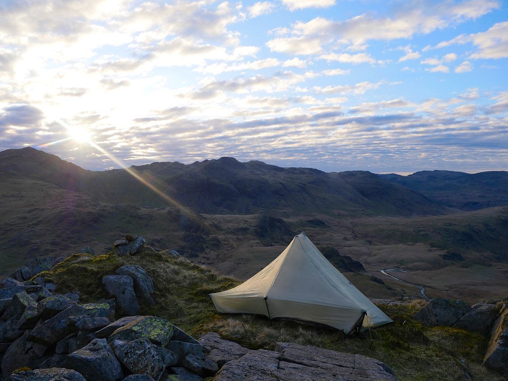 There was just enough room to pitch my tent. The sun and clouds are still putting on a great show over the fells to the east.
