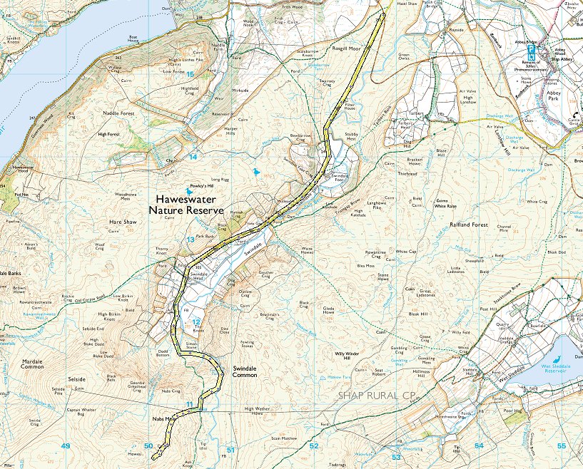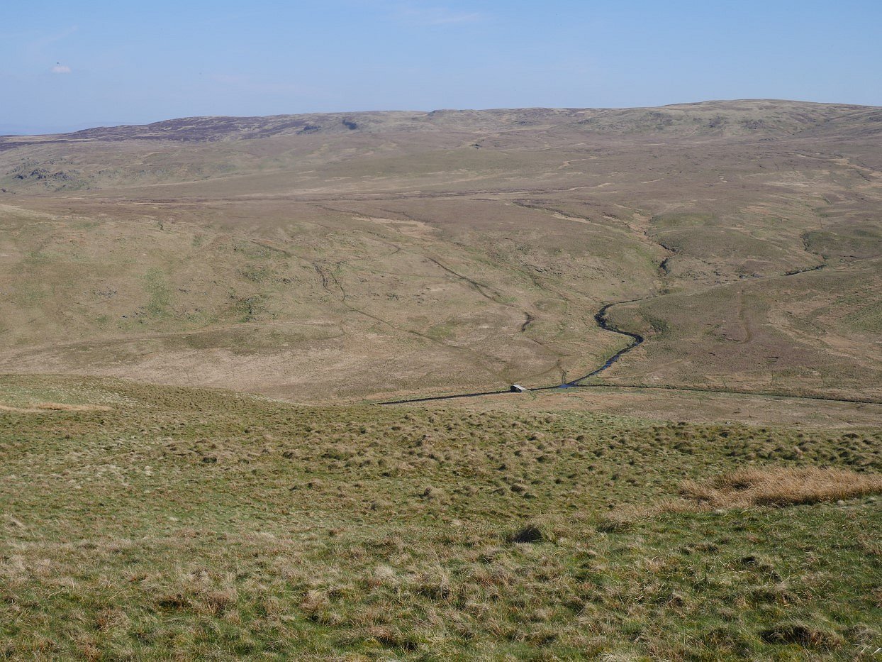 It's a steep pull up the fellside so I take a photo looking back down to the bridge whilst having a breather. The route from Wet Sleddale comes in from the left.