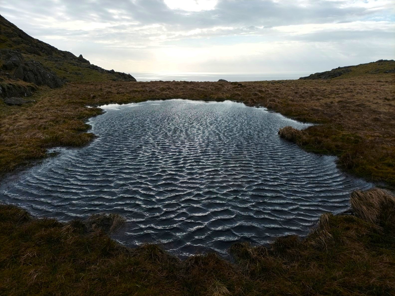 After not very long I reach the tiny tarn nestled in the saddle between Yoadcastle and Woodend Height. As you can see it was blowing a hoolie now so that scupperd my plans to camp on the tops overlooking the sea. I had to find a sheltered pitch in the lee of Yoadcastle.